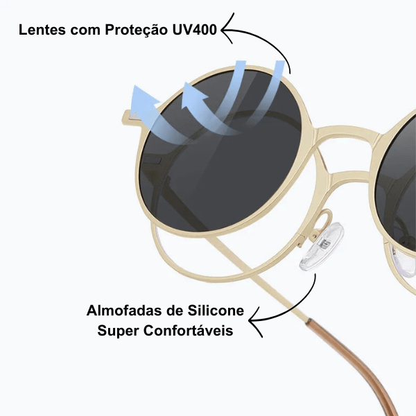 Óculos Redondo Clip On Eloá 2 em 1 – Elegância e Praticidade em Um Só Modelo